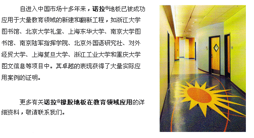归功于产品出色的性能表现,诺拉®为教育设施提供了综合的地面解决方案,被广泛应用于校园环境的门厅、走廊、教室、实验室、楼梯区域和行政部门等多种功能区域。