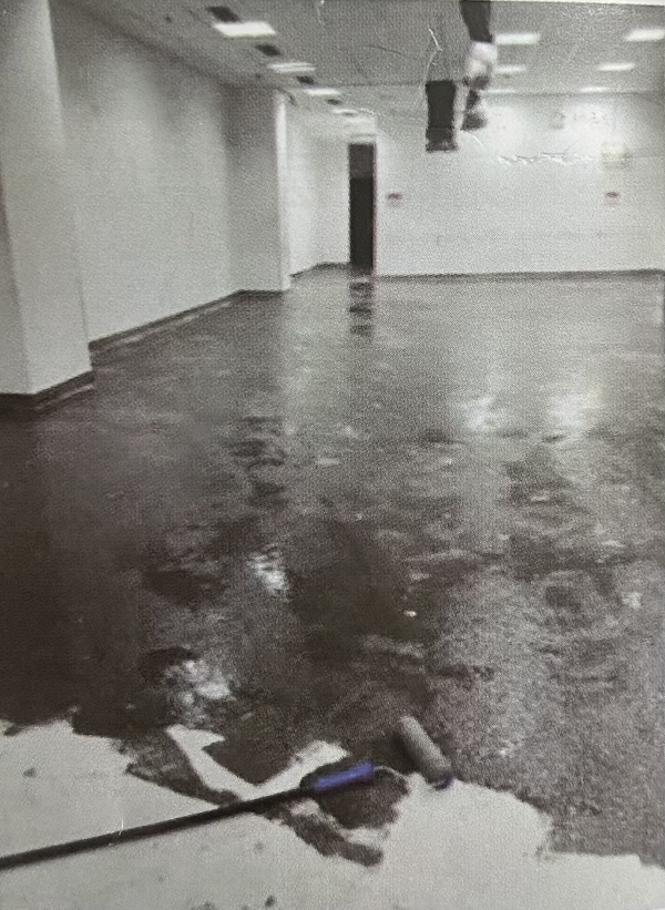 起砂的基层,薄薄的乳液硬化层被自流平带走