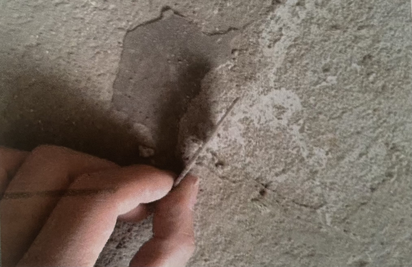 粘结拉伸强度达标才是关键,粘结拉伸强度测试,是真伪加固的试金石。尤其留意市售的一些所谓“加固剂”,现场演示刀子刻划,这只是表面硬,表面硬与粘结拉伸强度完全不同。比如鸡蛋壳很硬,但是一碰就碎,所以硬和脆是两个不同的概念。