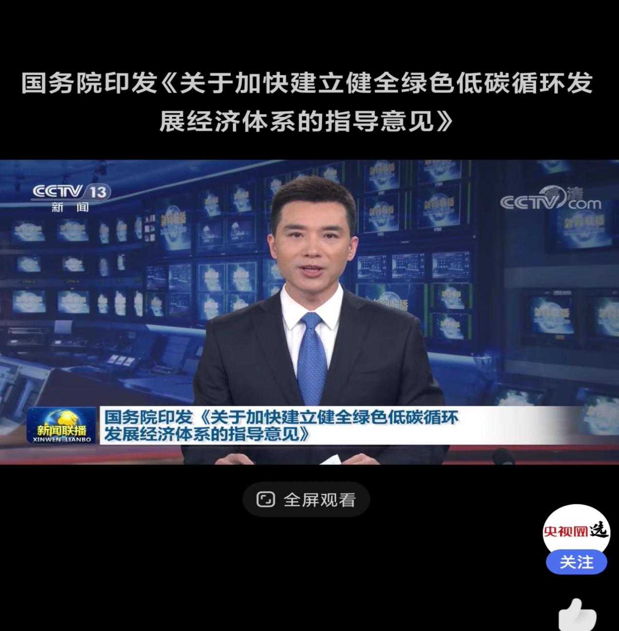 2021年2月02日,《国务院关于加快建立健全绿色低碳循环发展经济体系的指导意见》,意见指出:要深入贯彻党的十九大和十九届二中、三中、四中、五中全会精神,全面贯彻生态文明思想,认真落实党中央、国务院决策部署,坚定不移贯彻新发展理念,全方位全过程推行绿色规划、绿色设计、绿色投资、绿色建设、绿色生产、绿色流通、绿色生活、绿色消费,使发展建立在高效利用资源、严格保护生态环境、有效控制温室气体排放的基础上,统筹推进高质量发展和高水平保护,建立健全绿色低碳循环发展的经济体系,确保实现碳达峰、碳中和目标,推动我国绿色发展迈上新台阶。