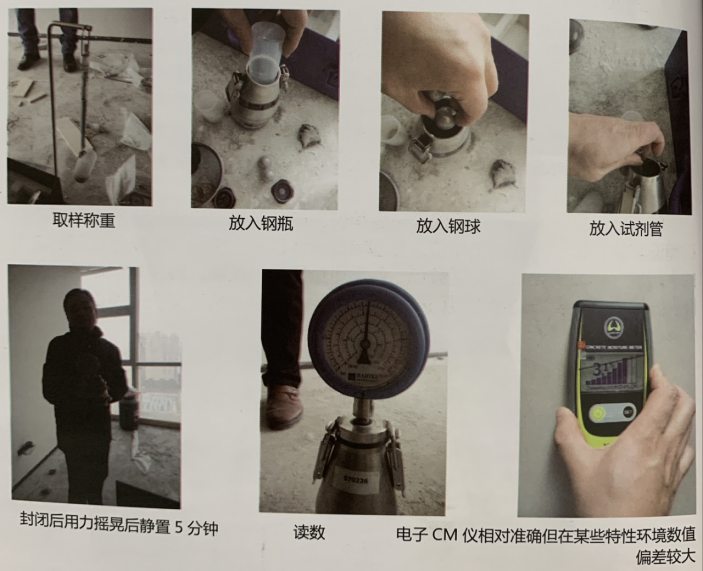 建筑现场实用的方法仅有RH 法和CM 法。CM含水率测试方法依据 TKB16技术规范。