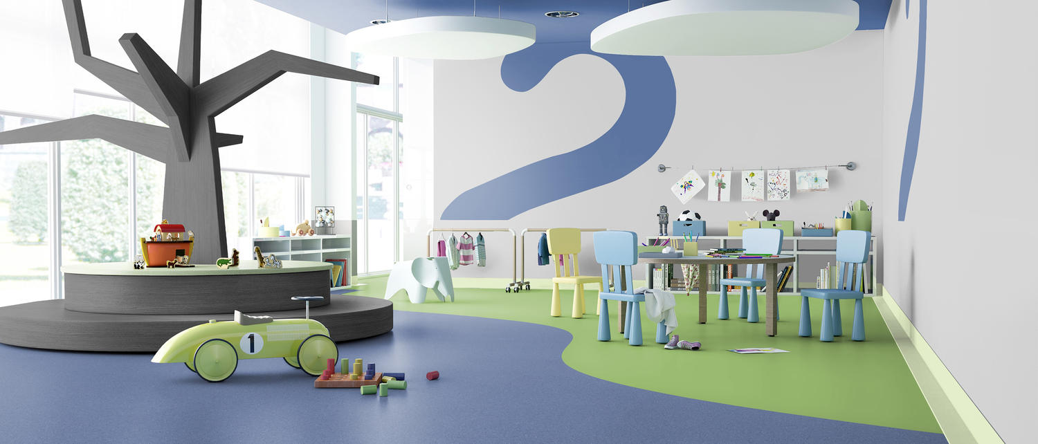 针对学龄前儿童,激发他们的感官感受至关重要。因此,我们特别注意地板的颜色和图案组合,以便激发他们好奇心和感知,并鼓励刚学会走路的儿童在我们的地板上行走玩耍。
