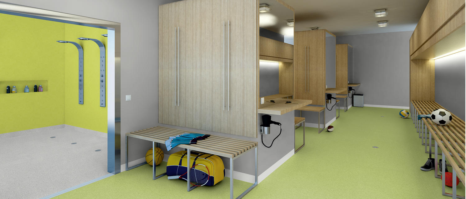 体育活动结束后,学生们需要快速安全地淋浴并换衣服,然后再回到教室。我们的淋浴间和更衣室地板提供赤足防滑更能,兼具舒适性和防滑性,以避免在潮湿地板上滑倒。此外我们的潮湿区域解决方案还可以提供完美的防水效果。