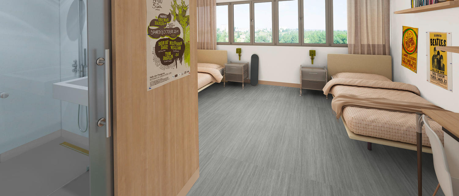 学生的寝室应该像家一样温馨舒适,这就是为什么我们的地板解决方案旨在将温暖和愉悦的氛围注入到空间之中,吸音降噪,脚感舒适。对于配有淋浴和浴室的寝室,我们的潮湿区域解决方案可以提供赤足防滑功能,防止滑倒。