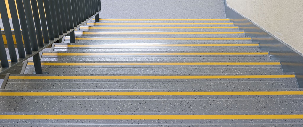 带有安全警示条的楼梯板