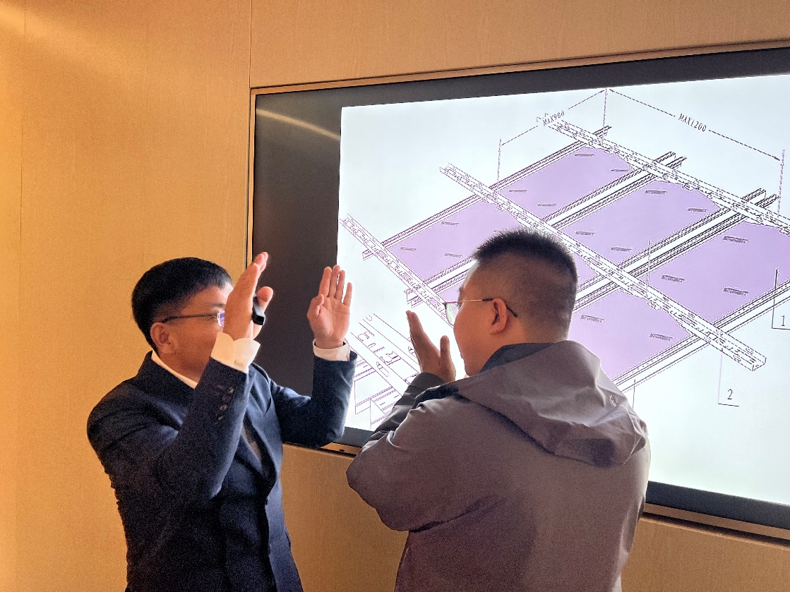 考察学习期间,我公司领导与部门经理同广州康普顿至高建材有限公司的区域经理就金属天花,金属墙板的表现形式、安装方式等进行了系统的了解和深入的交流。